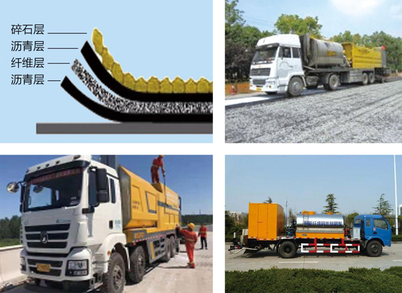 纖維封層施工中,經過專門工藝破碎切割的纖維在上下兩層均勻灑布的瀝青結合料中呈亂向均勻分布,相互搭接,與瀝青混合料形成網絡纏繞結構,有效地提高了封層的抗拉抗剪、抗壓和抗沖擊強度等綜合力學性能,類似在新建道路基層和面層之間或原有路面基礎上加鋪了一層具有高彈性和高強度的防護網墊。特別適用于舊瀝青路面(或新建路基)、面層層間應力吸收中間層和原有舊瀝青路面耐磨層施工,對新舊瀝青道路建設及養護起到有效的保護作用,更能延長其養護周期及服務壽命。